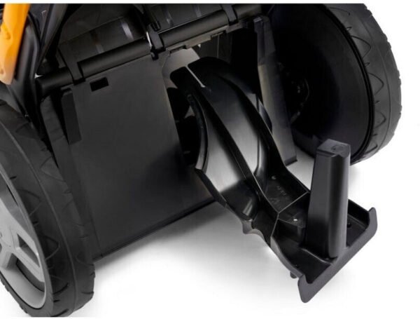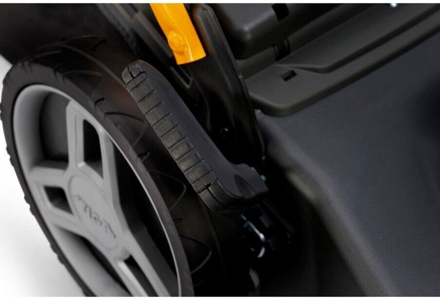 Der integrierte Radantrieb erleichtert das Mähen erheblich und sorgt für müheloses Vorankommen, auch auf größeren oder leicht unebenen Flächen.